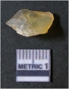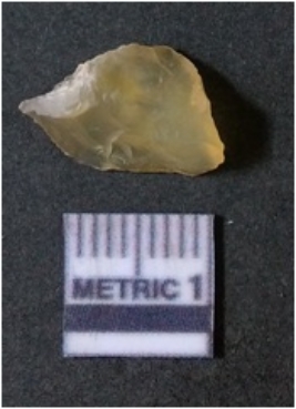 | Description / विवरण | It is chalcedony flake, translucent in appearance. The piece shows sharp pointed ends and flake scars on the surface as a result of flaking. The piece shows a bulb of percussion. |