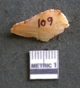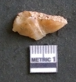 | Description / विवरण | It is a chalcedony flake, with a bulb of percussion on the ventral side. Cortex on one end. |