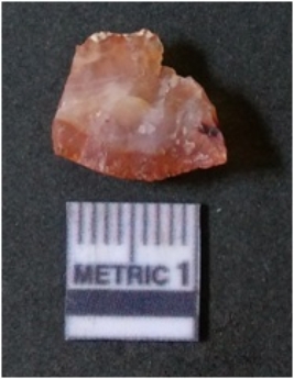| Description / विवरण | It is chalcedony flake, translucent in appearance. The piece shows sharp pointed ends and flake scars on the surface as a result of flaking. The piece shows a bulb of percussion. |