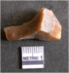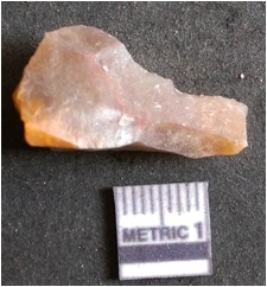 | Description / विवरण | It is chalcedony flake, translucent in appearance. The piece shows sharp pointed ends and flake scars on the surface as a result of flaking. The piece shows a bulb of percussion. |