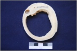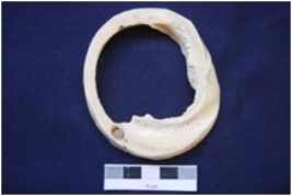 | Description / विवरण | It is a complete Shell Circlet with irregular sides. Worm holes and a big hole is present on the same. |