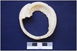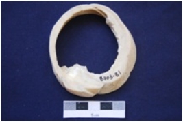 | Description / विवरण | It is a complete Shell Circlet with irregular sides. Worm holes are present on the same. |