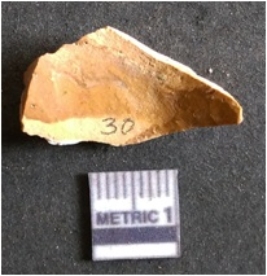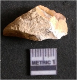 | Description / विवरण | The chert piece is dark in color, with a prominent bulb of percussion and sharp flaked edges. The piece is a part of lithic debitage or raw material for lithic knapping. The piece shows clear ripple marks and bulb of percussion. |