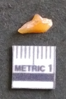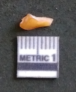 | Description / विवरण | It is a chalcedony flake, with a bulb of percussion on the ventral side. Cortex on one end. |