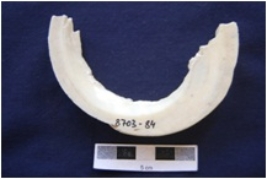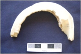 | Description / विवरण | It is a thick broken shell circlet with irregular sides. Cut marks and worm holes are present in it. It has rectangular cross section |