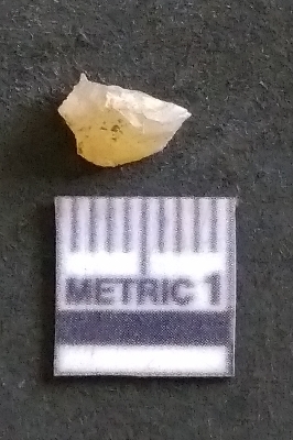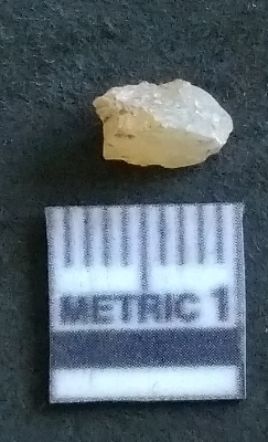 | Description / विवरण | It is a chalcedony flake, with a bulb of percussion on the ventral side. Cortex on one end. |