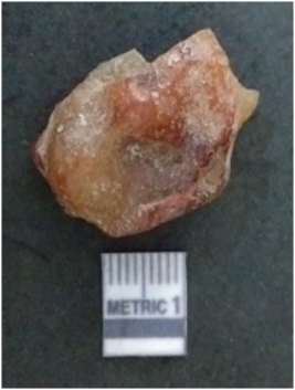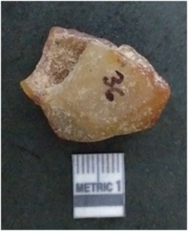 | Description / विवरण | The carnelian flake is red in colour, with angular flaked edges and a bulbous end. The piece has sharp pointed end and a crypto-crystalline matrix. The piece is reddish in colour; with silica base. |