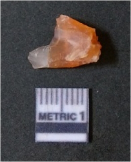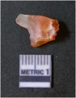 | Description / विवरण | It is chalcedony flake, translucent in appearance. The piece shows sharp pointed ends and flake scars on the surface as a result of flaking. The piece shows a bulb of percussion. |