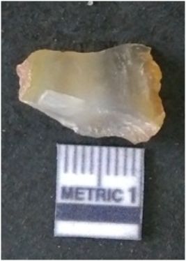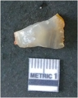 | Description / विवरण | The banded agate piece is crystalline in nature, with a smooth fracture pattern and visible bands on the flaked sides. The piece is pale in color and has sharp flaked ends. |
