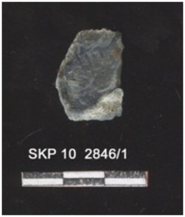 | Description / विवरण | Lithic debitage on agate, the ridges can be clearly seen; the striking platform and bulb of percussion can be seen. |