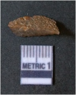 | Description / विवरण | It is chalcedony flake, translucent in appearance. The piece shows sharp pointed ends and flake scars on the surface as a result of flaking. The piece shows a bulb of percussion. |