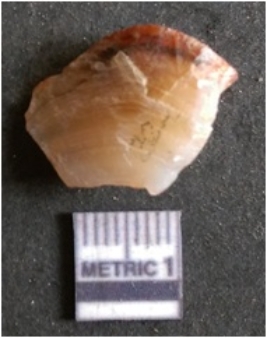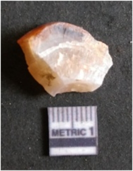 | Description / विवरण | The banded agate piece is crystalline in nature, with a smooth fracture pattern and visible bands on the flaked sides. The piece is pale in color and has sharp flaked ends. |