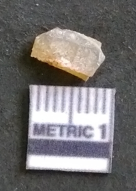 | Description / विवरण | It is a chalcedony flake, with a bulb of percussion on the ventral side. Cortex on one end. |