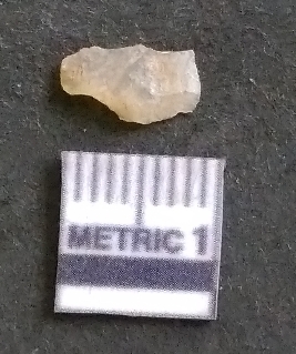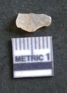 | Description / विवरण | It is a chalcedony flake, with a bulb of percussion on the ventral side. Cortex on one end. |
