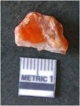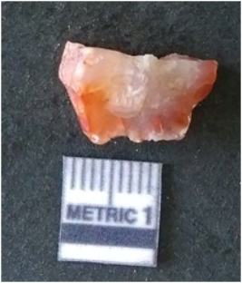 | Description / विवरण | The flake has irregular fracture pattern and sharp flaked edges as a result of lithic knapping activity. The piece is pale, with surfacial flake scars and a bulbous end. The quartz flake is rosy white in colour. |