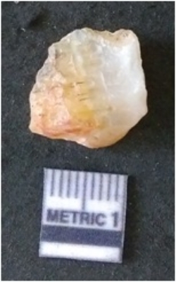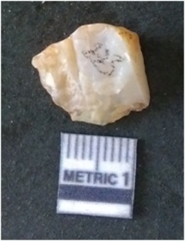 | Description / विवरण | It is chalcedony flake, translucent in appearance. The piece shows sharp pointed ends and flake scars on the surface as a result of flaking. The piece shows a bulb of percussion. |