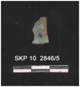 | Description / विवरण | Lithic debitage on agate, the ridges can be clearly seen; the striking platform and bulb of percussion can be seen. |