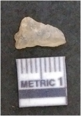 | Description / विवरण | The chalcedony flake is pale in colour and translucent in appearance. The piece has s harp flaked ends and a bulbous end due to flaking. The flake has a crypto-crystalline silica matrix. |