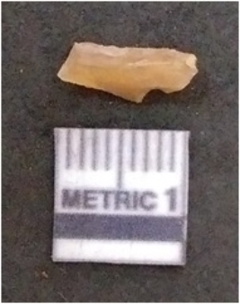 | Description / विवरण | The chalcedony flake is pale in colour and translucent in appearance. The piece has s harp flaked ends and a bulbous end due to flaking. The flake has a crypto-crystalline silica matrix. |