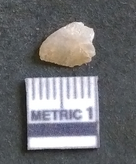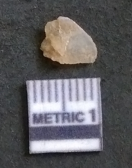 | Description / विवरण | It is a chalcedony flake, with a bulb of percussion on the ventral side. Cortex on one end. |