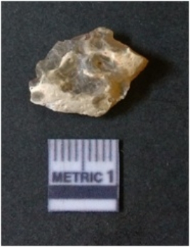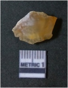 | Description / विवरण | It is chalcedony flake, translucent in appearance. The piece shows sharp pointed ends and flake scars on the surface as a result of flaking. The piece shows a bulb of percussion. |