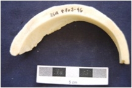 | Description / विवरण | It is a broken Shell Circlet with irregular sides and worm holes. It has rectangular cross section. |