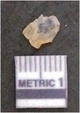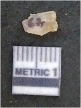 | Description / विवरण | The chalcedony flake is pale in colour and translucent in appearance. The piece has s harp flaked ends and a bulbous end due to flaking. The flake has a crypto-crystalline silica matrix. |