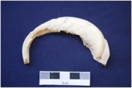 | Description / विवरण | It is a broken Shell Circlet with irregular sides and cut marks. It has rectangular cross section. |