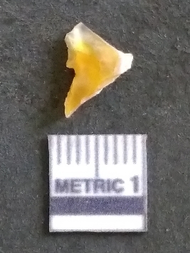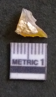 | Description / विवरण | It is a chalcedony flake, with a bulb of percussion on the ventral side. Cortex on one end. |