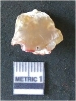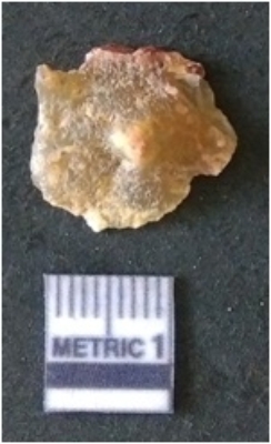 | Description / विवरण | It is chalcedony flake, translucent in appearance. The piece shows sharp pointed ends and flake scars on the surface as a result of flaking. The piece shows a bulb of percussion. |