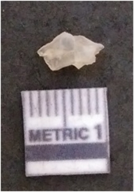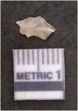 | Description / विवरण | The chalcedony flake is pale in colour and translucent in appearance. The piece has s harp flaked ends and a bulbous end due to flaking. The flake has a crypto-crystalline silica matrix. |