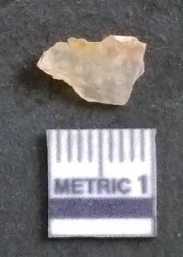 | Description / विवरण | It is a chalcedony flake, with a bulb of percussion on the ventral side. Cortex on one end. |