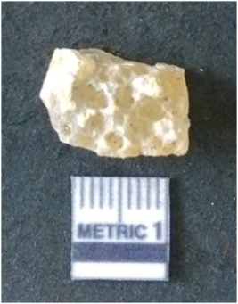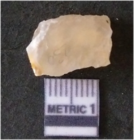 | Description / विवरण | It is chalcedony flake, translucent in appearance. The piece shows sharp pointed ends and flake scars on the surface as a result of flaking. The piece shows a bulb of percussion. |