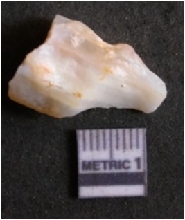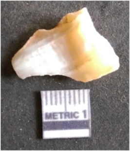 | Description / विवरण | The banded agate piece is crystalline in nature, with a smooth fracture pattern and visible bands on the flaked sides. The piece is pale in color and has sharp flaked ends. |
