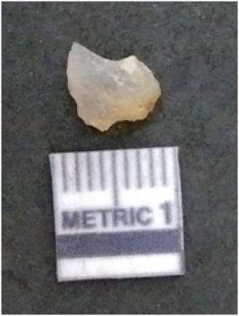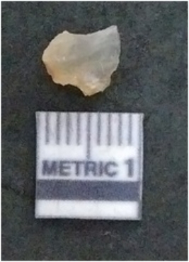 | Description / विवरण | The chalcedony flake is pale in colour and translucent in appearance. The piece has s harp flaked ends and a bulbous end due to flaking. The flake has a crypto-crystalline silica matrix. |