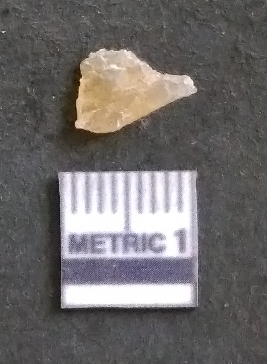 | Description / विवरण | It is a chalcedony flake, with a bulb of percussion on the ventral side. Cortex on one end. |