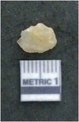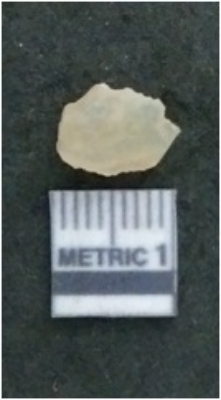 | Description / विवरण | The chalcedony flake is pale in colour and translucent in appearance. The piece has s harp flaked ends and a bulbous end due to flaking. The flake has a crypto-crystalline silica matrix. |