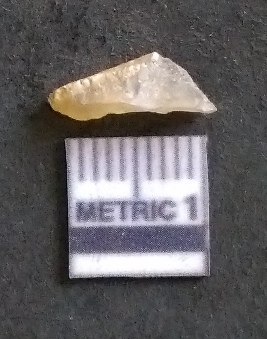 | Description / विवरण | It is a chalcedony flake, with a bulb of percussion on the ventral side. Cortex on one end. |