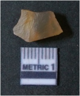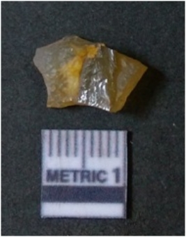 | Description / विवरण | The agate piece is translucent in appurtenance, with angular flaked edges and a bulb of percussion. The piece shows flake scars on the surface. |