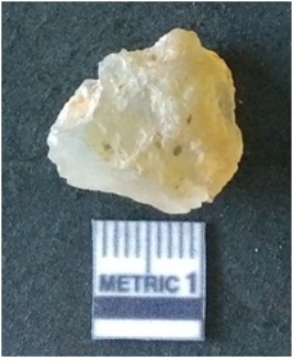 | Description / विवरण | It is chalcedony flake, translucent in appearance. The piece shows sharp pointed ends and flake scars on the surface as a result of flaking. The piece shows a bulb of percussion. |