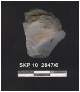 | Description / विवरण | It is a fragment of agate. The ridges, striking platform, bulb of percussion can be seen. The edges sides are retouched. |