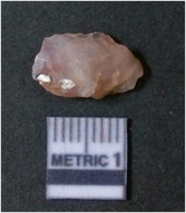 | Description / विवरण | It is chalcedony flake, translucent in appearance. The piece shows sharp pointed ends and flake scars on the surface as a result of flaking. The piece shows a bulb of percussion. |