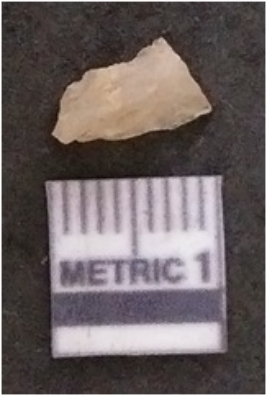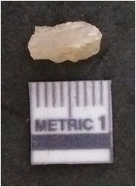 | Description / विवरण | The chalcedony flake is pale in colour and translucent in appearance. The piece has s harp flaked ends and a bulbous end due to flaking. The flake has a crypto-crystalline silica matrix. |