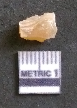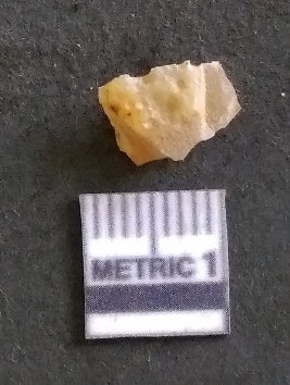 | Description / विवरण | It is a chalcedony flake, with a bulb of percussion on the ventral side. Cortex on one end. |