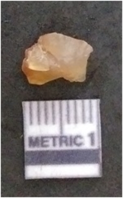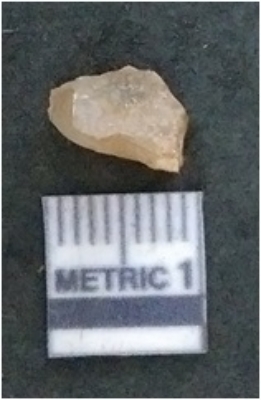 | Description / विवरण | The chalcedony flake is pale in colour and translucent in appearance. The piece has s harp flaked ends and a bulbous end due to flaking. The flake has a crypto-crystalline silica matrix. |