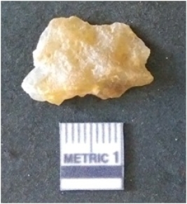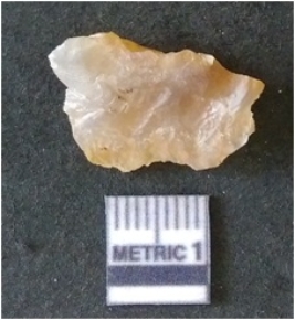 | Description / विवरण | It is chalcedony flake, translucent in appearance. The piece shows sharp pointed ends and flake scars on the surface as a result of flaking. The piece shows a bulb of percussion. |