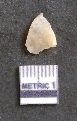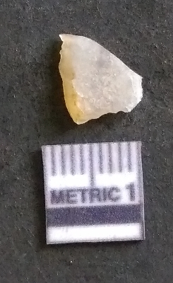 | Description / विवरण | It is a chalcedony flake, with a bulb of percussion on the ventral side. Cortex on one end. |