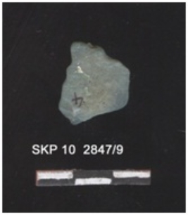 | Description / विवरण | It is a fragment of agate. The ridges, striking platform, bulb of percussion can be seen. The edges sides are retouched. |
