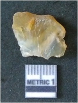 | Description / विवरण | The banded agate piece is crystalline in nature, with a smooth fracture pattern and visible bands on the flaked sides. The piece is pale in color and has sharp flaked ends. |