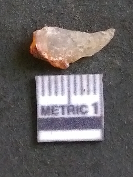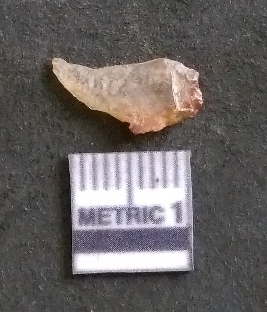 | Description / विवरण | It is a chalcedony flake, with a bulb of percussion on the ventral side. Cortex on one end. |